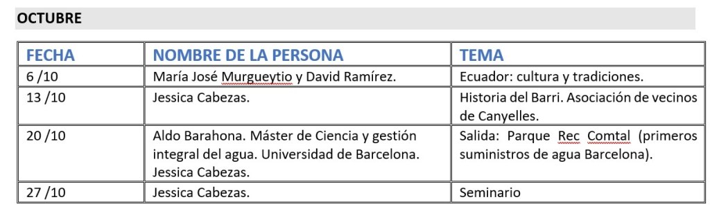 Universitat al Barri. Programa octubre