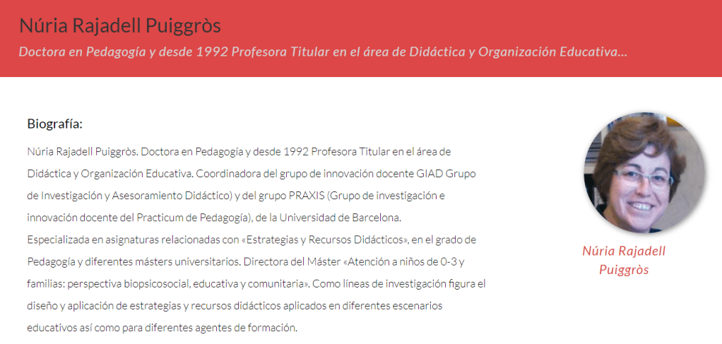 Dra. Núria Rjadell Puiggròs. Professora titular Universitat de Barcelona.