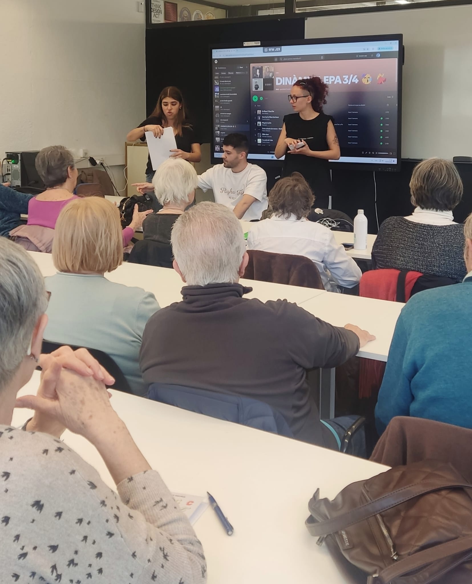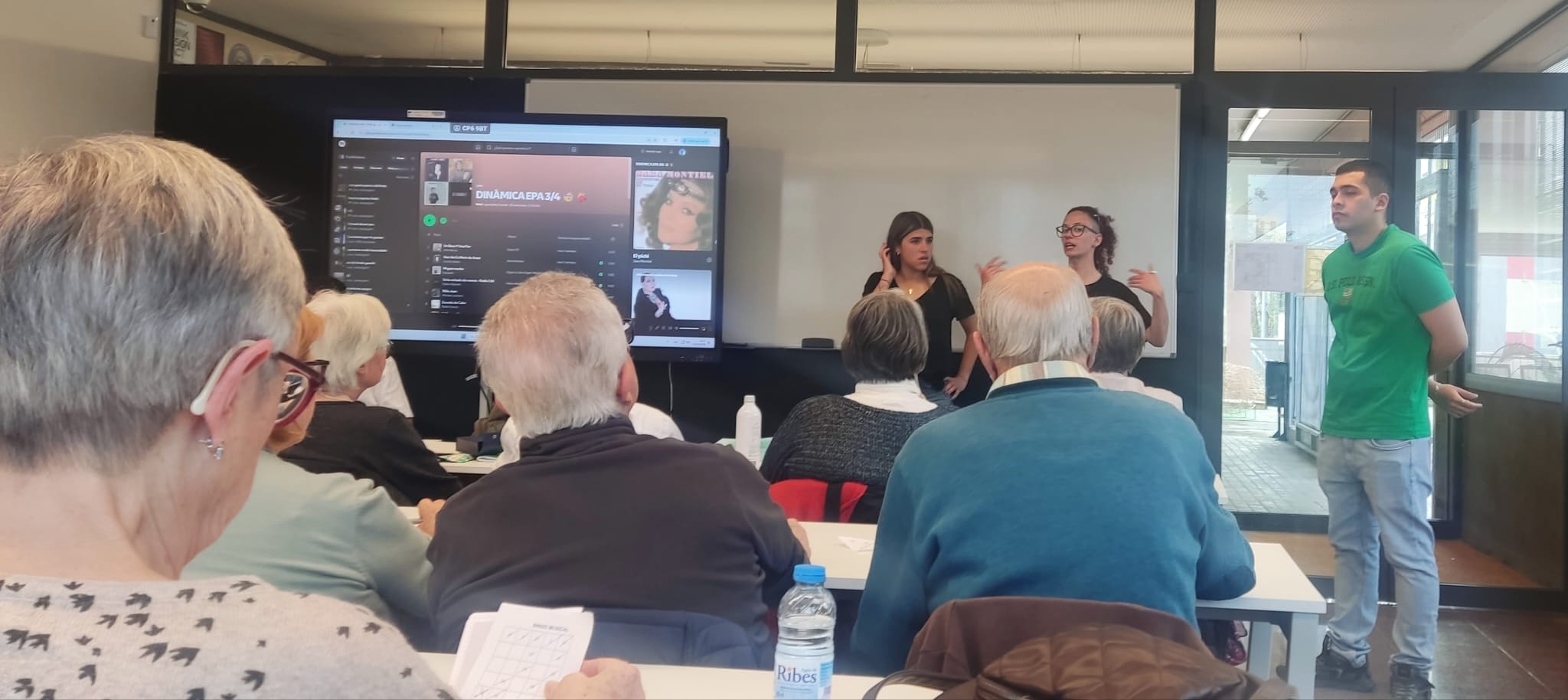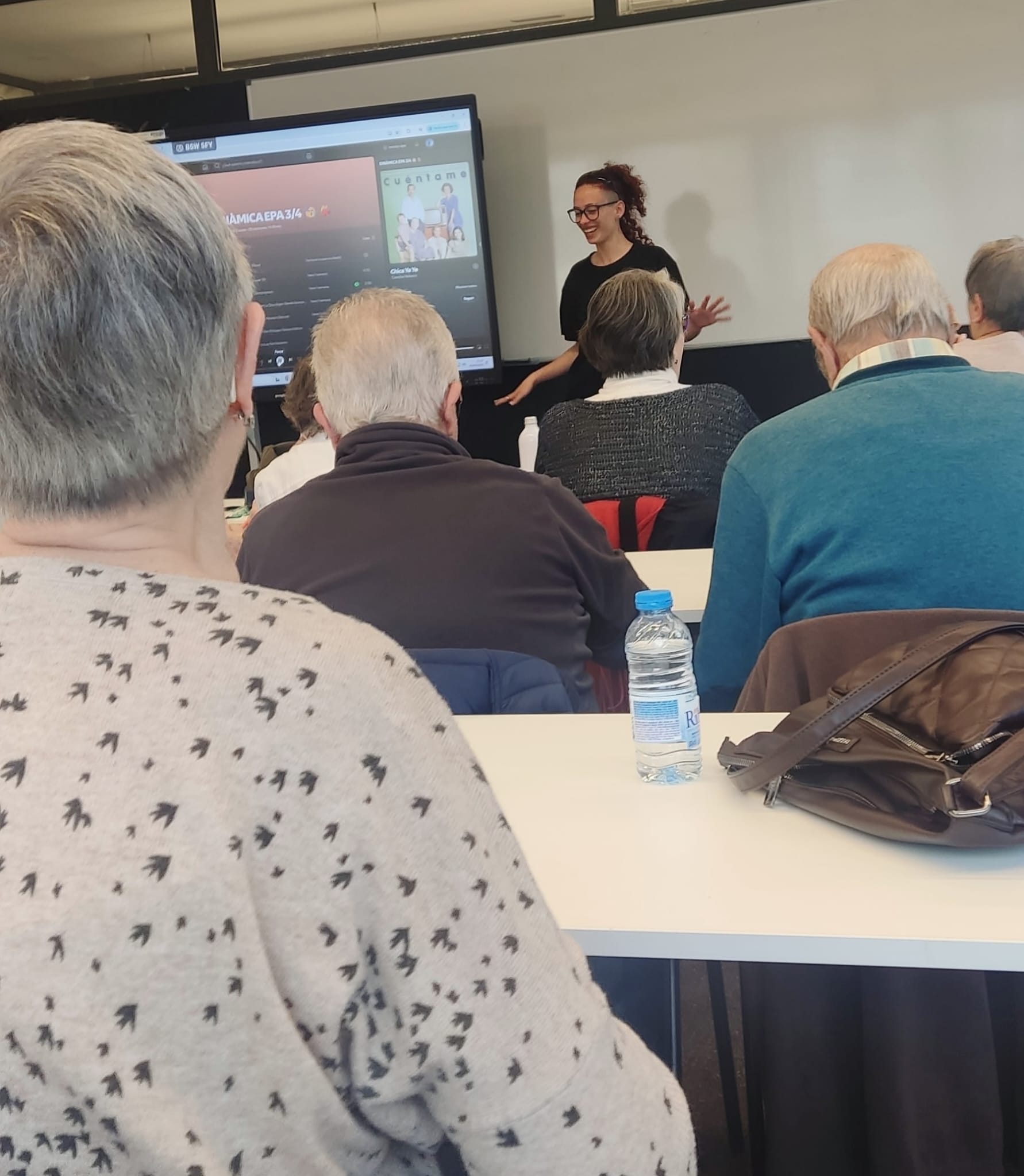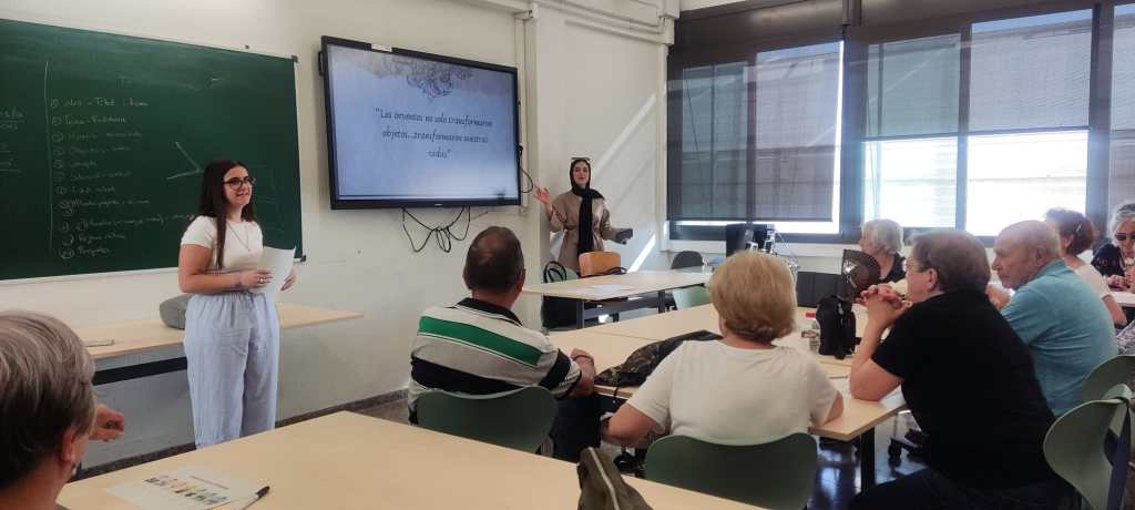 En la segona part de la sessió ens van portar a través de la música per a promoure l’ús de la memòria i la seva vinculació amb els nostres records. També reflexionem si la música d’abans era millor que l’actual i com a vegades, oblidem que les lletres del passat contenien alguns missatges masclistes que en el seu moment no percebem.