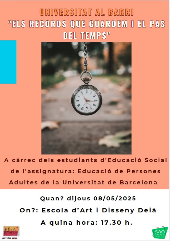 Cartell de difusió En aquesta sessió i a través de l’estimulació de records es van construir relats col·lectius que van connectar contextos i persones distintes. Van sorgir anècdotes que ens van fer riure i que ens fer veure que, a vegades, tenim més en comú del que podem pensar.